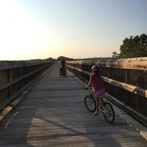 Hannah's that little tiny dot ahead of Joseph and the bike trailer . Liam, of course, loved his ride since he didn't have to do any work and could eat snacks the whole time , and Norah enjoyed the 4.5 mile ride back because we talked all about @cappsabbey ‘s upcoming wedding while we rode. Talking about the “marrying” is her favorite thing to do. ?