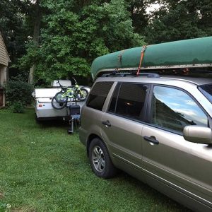 Due to picking up the canoe, we had to relocate the bikes to the camper. We're now precariously loaded. Fingers crossed!