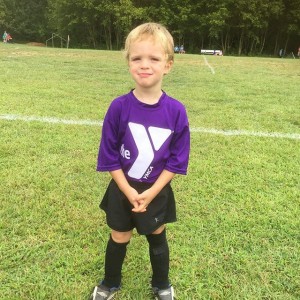 Liam's first soccer game – he didn't play, but he got to dress up, which I think he had as much fun with #liamjoseph