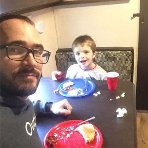 We had a full house in the RV for breakfast, so Liam and I ate in the bunk room. Loving this thing